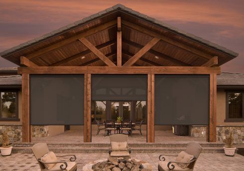 We offer a wide variety of outdoor shades, created to filter the sun and other elements, and keep insect out. There are motorized versions with wall switches and remote control.